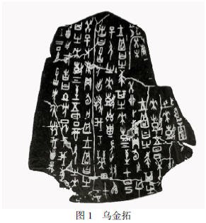乌金拓是用油烟墨经过数遍拓制而成,最好使用洁白平整、薄厚均匀的宣纸。乌金拓拓本黑白分明对比强烈,墨色沉稳乌黑油亮,浓墨而不显凝滞呆板,精气神十足,拓片上展现的文字与图案线条也会显得棱角分明,清晰细腻,主题突出,给人以最直观的视觉感和无限韵味(如图 1 所示)。乌金拓在制作过程中需要反复多次上墨,墨会在拓纸上积起厚度,要注意上墨的时间和干湿的掌握,扑子每次蘸墨不宜过多,用墨宜浓,层层叠拓,用力均匀,避免一次上墨过重过湿,形成大块死墨,出现“墨重淹字,浓墨失真”,使得文字或图案的线条受到墨色的侵染。乌金拓的上墨关键是第三遍,要保证墨色起亮匀净,润泽不凝,时刻注意字口和纹饰的局部细节,直至满意。乌金拓也被人们称道为浓墨拓本的至高境界。